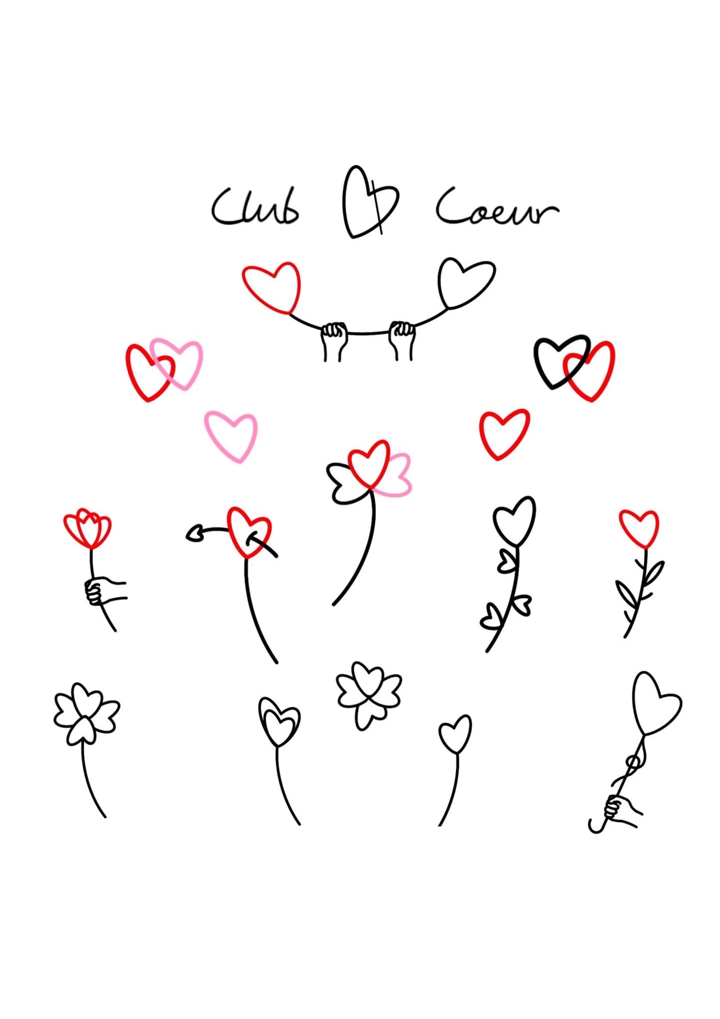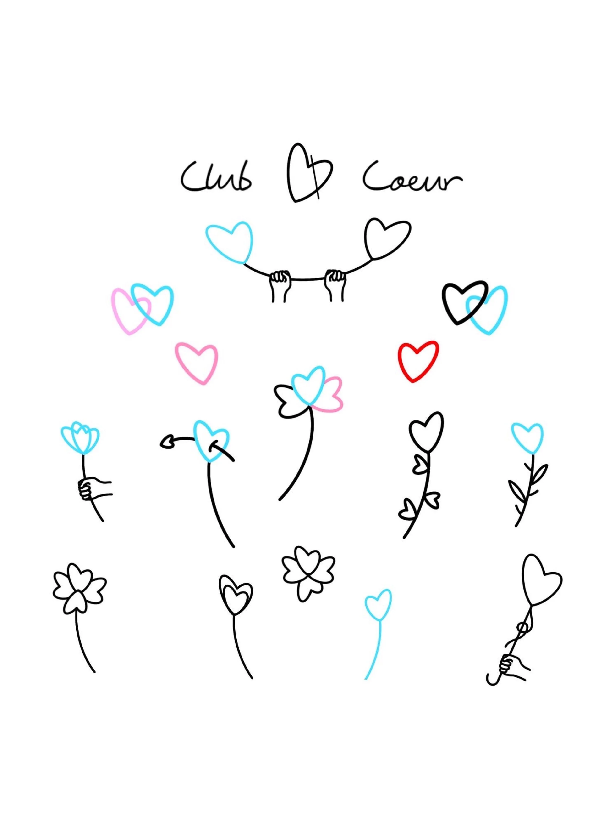 Ici je vous propose des flashs qui reprennent le design coeur de mon logo et qui sont faisables à l’infini. Le cœur est un symbole assez explicite d’amour, d’acceptation des autres et de bienveillance. Avec Club Cœur je voulais modestement faire en sorte que ces sentiments positifs puissent profiter aux personnes et aux causes qui en ont le plus besoin. C’est pourquoi à chaque tattoo Flash Coeur de cette planche je reverserai la somme de 25 euros à des associations.